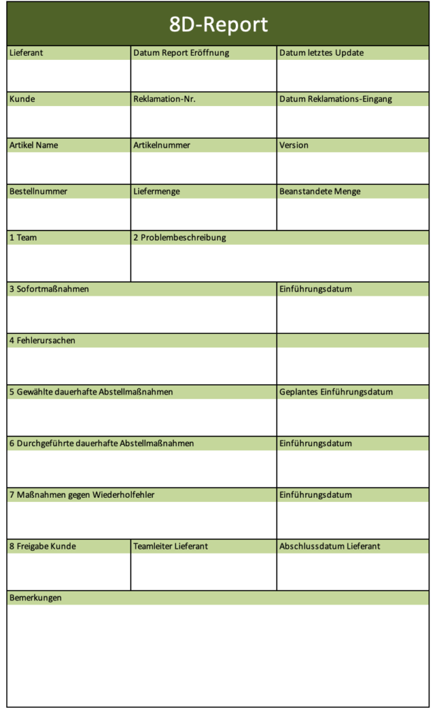 Downloaden 8D-Report Vorlage Excel Kostenlos