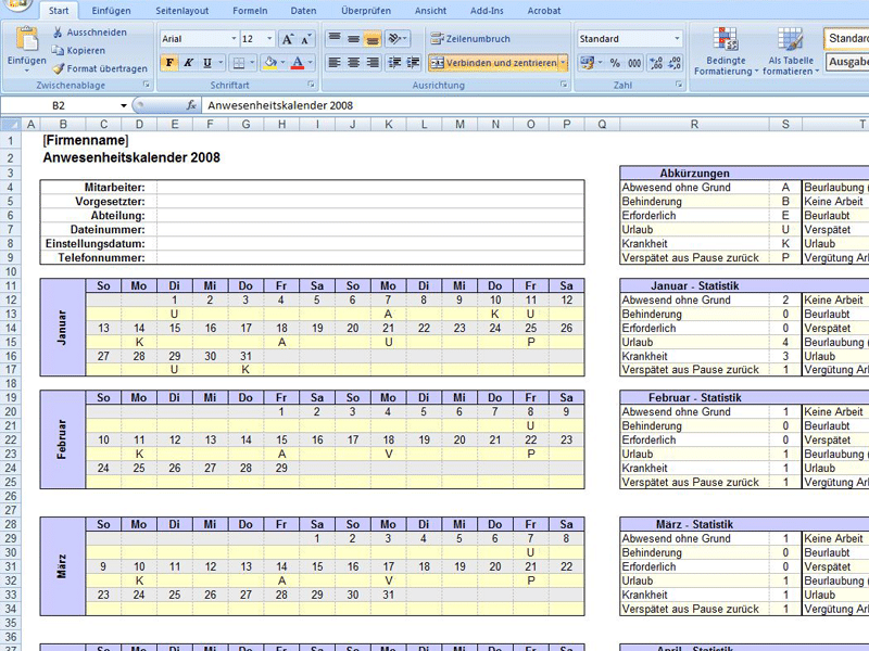 Kostenlose Excel-Vorlage zur Erfassung von Krankheitstagen. Einfach zu bedienen, zur schnellen Ermittlung von Krankenstandszahlen ideal für Unternehmen und Personalabteilungen.