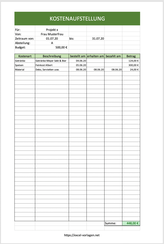 Kostenaufstellung leicht gemacht: Nutzen Sie unsere kostenlose Excel-Vorlage zur übersichtlichen Erfassung und Verwaltung Ihrer Rechnungen. Einfach, praktisch und sofort einsetzbar.