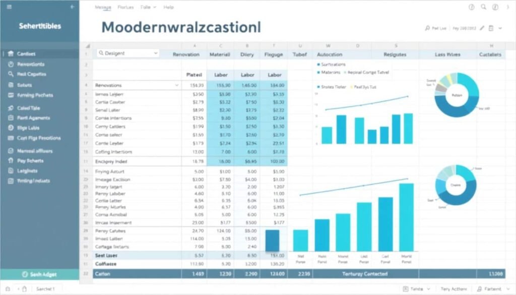 Moderne Excel-Vorlage zur Berechnung und Prüfung von Modernisierungskosten. Einfach Investitionskosten erfassen und Wirtschaftlichkeit Ihres Projekts schnell analysieren.