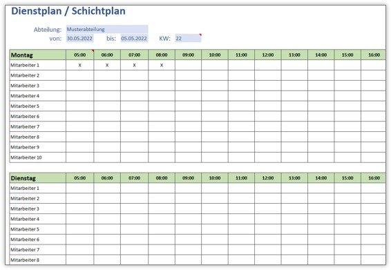 Kostenlose Excel-Dienstplan-Vorlage zur einfachen Erstellung von SOLL- und IST-Dienstplänen für Mitarbeitende. Perfekt für übersichtliche Einsatzplanung und effizientes Zeitmanagement.