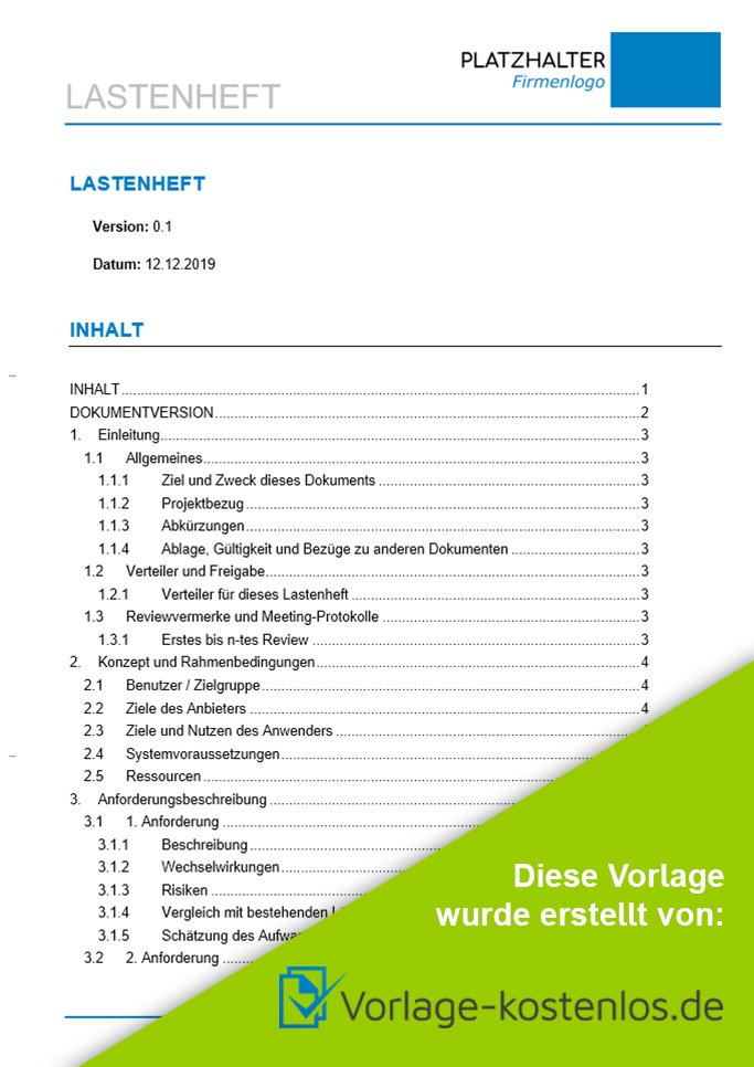 Praktische Excel-Vorlage für Lastenhefte mit mehreren ausfüllbaren Blättern, ideal für potenzielle Auftragnehmer zur Angebotsvorbereitung und übersichtlichen Dokumentation.