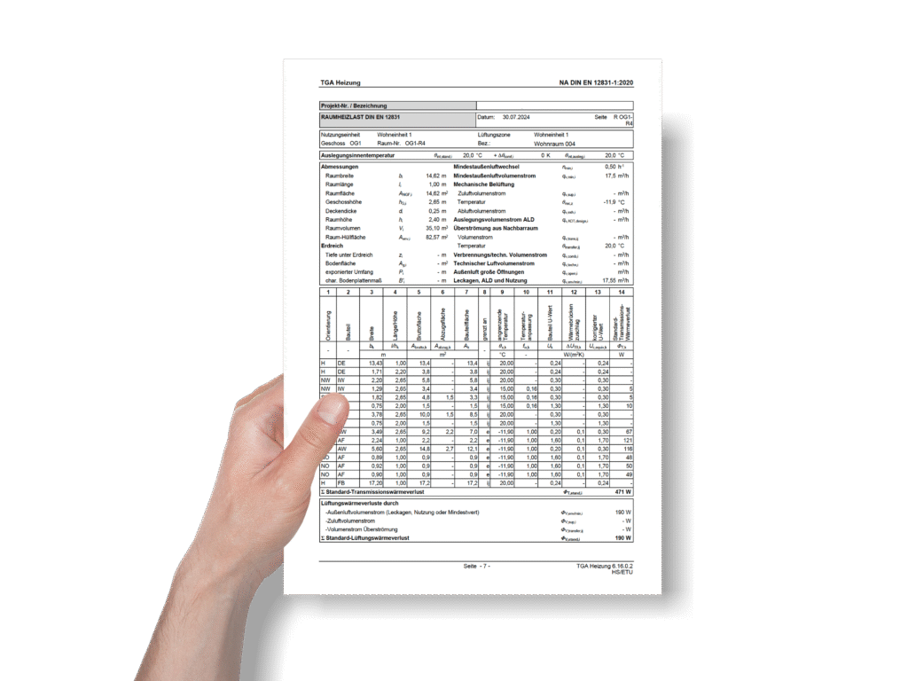 Praktische Excel-Vorlage zur Heizlastberechnung nach DIN V 4108-6 und Anlagentechnik gemäß DIN V 4701-10 für effiziente Energieplanung und Primärenergiebedarfsermittlung.