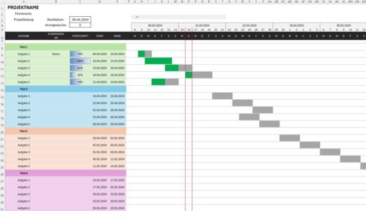 Erstellen Sie mühelos Gantt-Diagramme mit Microsoft Excel oder Project – nutzen Sie unsere praktische Excel Gantt Diagramm Vorlage für effizientes Projektmanagement und Budgetkontrolle.