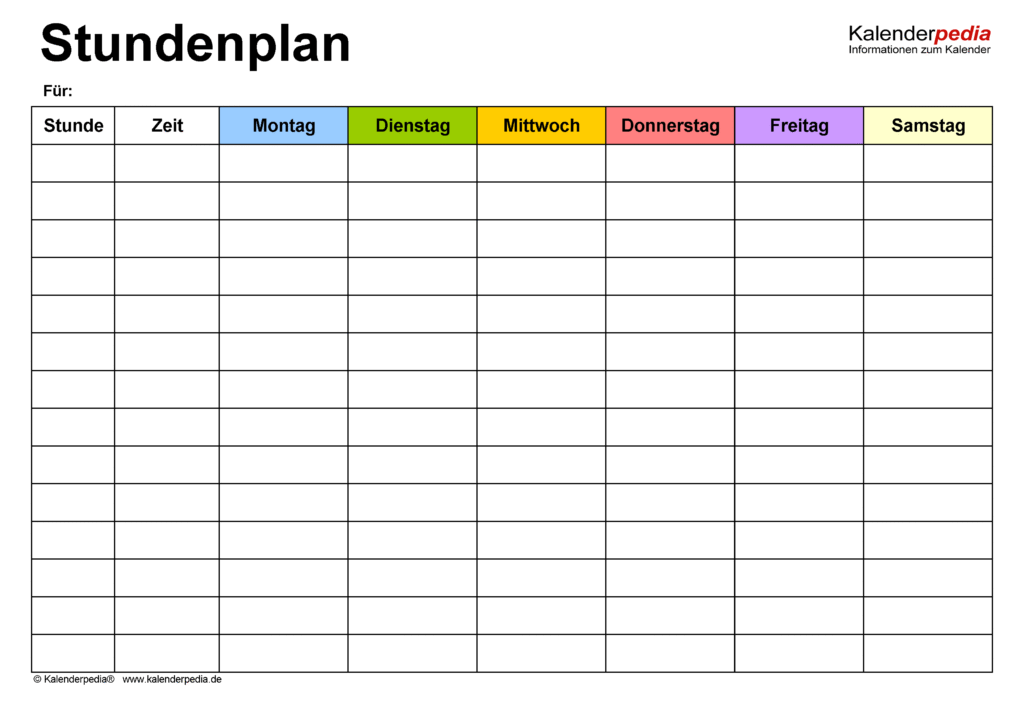 Downloaden Stundenplan Excel Vorlage Kostenlos